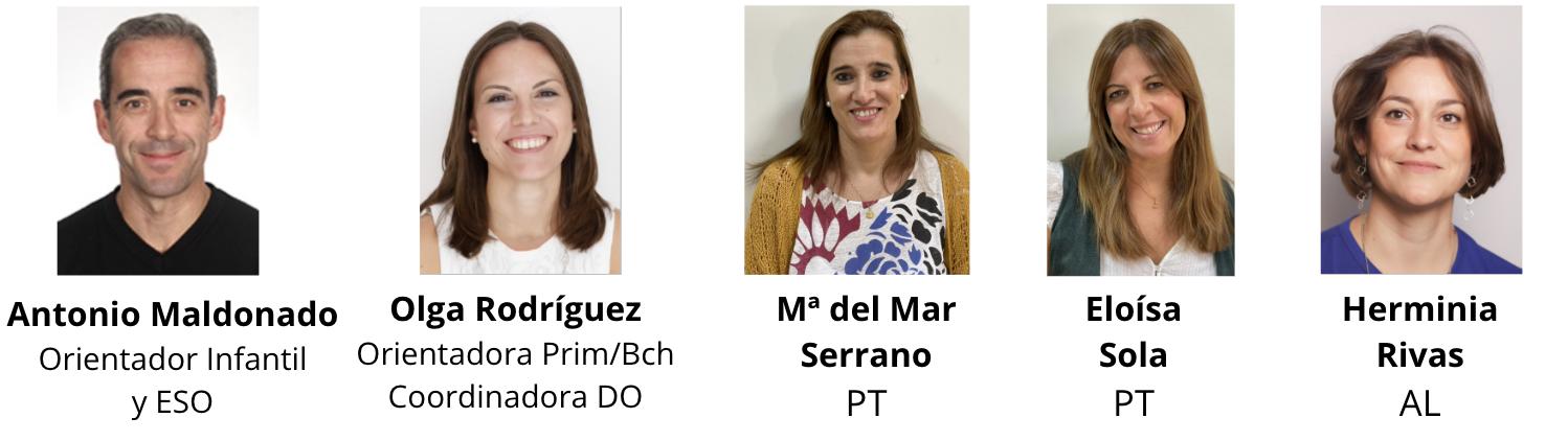 Dos orientadores, dos maestras especialistas en pedagogía terapéutica y una maestra especialista en audición y lenguaje.